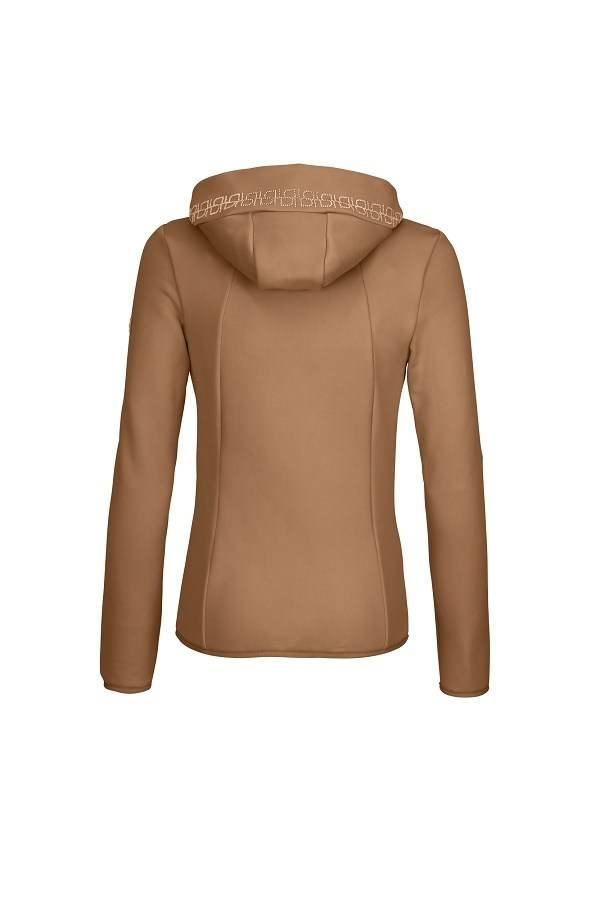 Delikatnie mieniące się logo kolekcji wykonane z drobnych kryształków na prawej kieszeni, wzdłuż rantu na kapturze oraz naszywka na lewym rękawie.