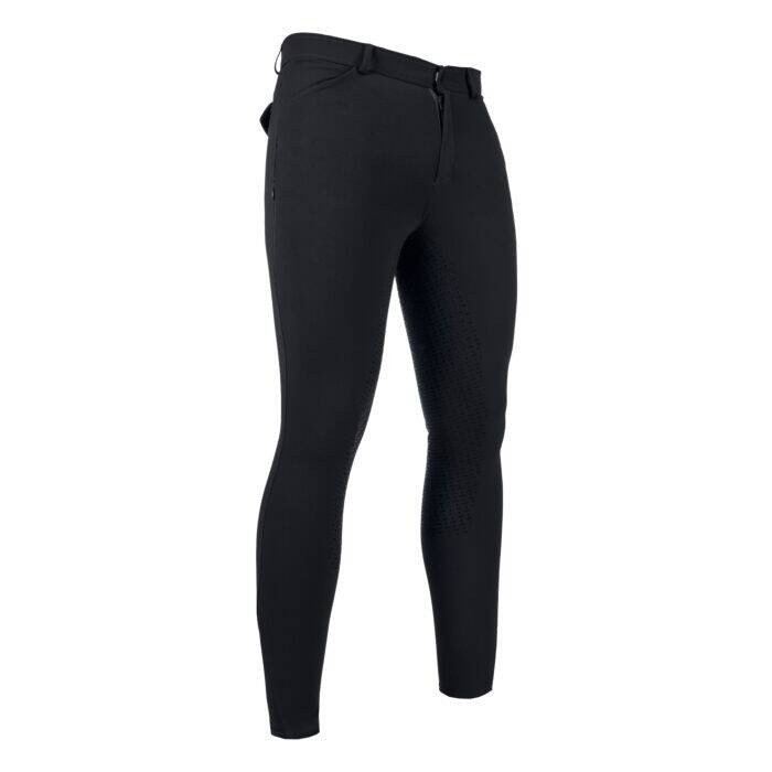 Bryczesy męskie firmy HKM z pełnym lejem silikonowym. Bardzo dobrze skrojone.