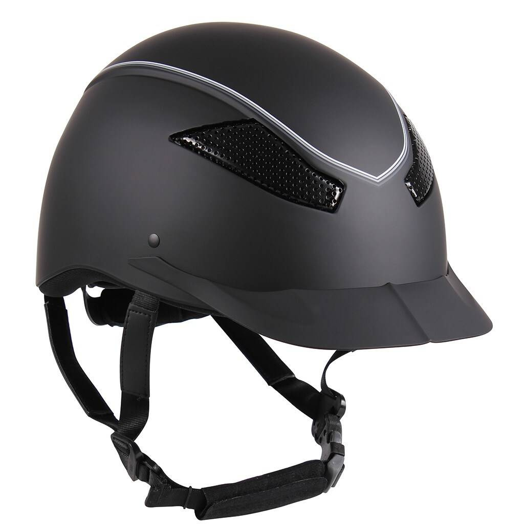 Kask ochronny o gładkiej skorupie ozdobiony cienkimi paseczkami w