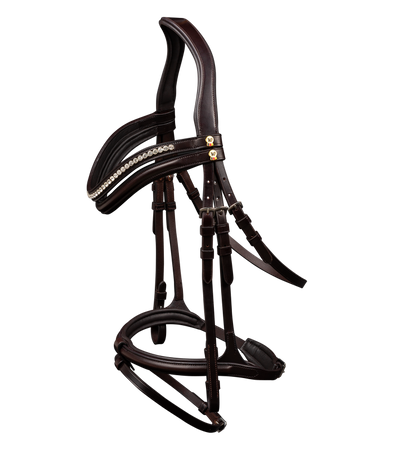 Anatomiczne ogłowie z linii S-Line firmy Waldhausen. Ogłowie wyposażone w dwa naczółki. Bardzo miękko podszyty nachrapnik i potylica. Profilowany nachrapnik ze skośnikiem.