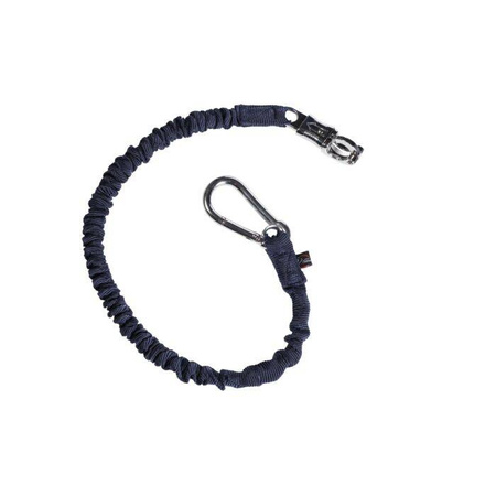 Elastyczny uwiąz z bezpiecznym zapięciem, solidne okucia w kolorze srebrnym.