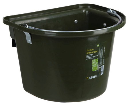 Przenośny żłób o pojemności 12 litrów z metalowym zawiesiem do zawieszania w pojeździe lub boksie dla koni. Dodatkowo posiada metalową rączkę. Wykonany z wytrzymałego bezodpryskowego tworzywa sztucznego.